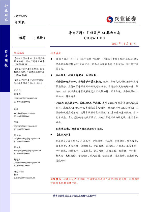 【兴业证券】【20231111】华为昇腾:引领国产AI算力生态-20页