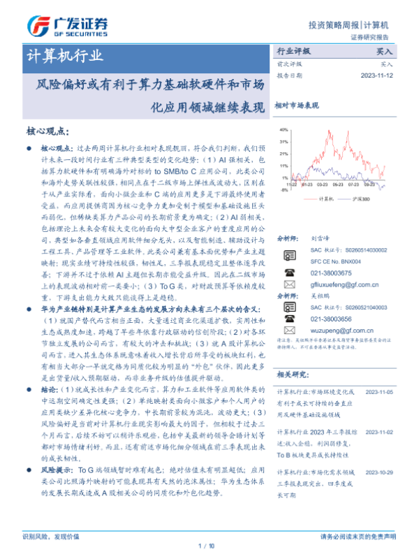 【广发证券】【20231112】20231112-广发证券-计算机行业投资策略周报:风险偏好或有利于算力基础软硬件和市场化应用领域继续表现-10页