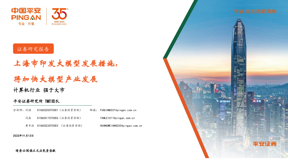 【平安证券】【20231113】上海市印发大模型发展措施,将加快大模型产业发展-10页