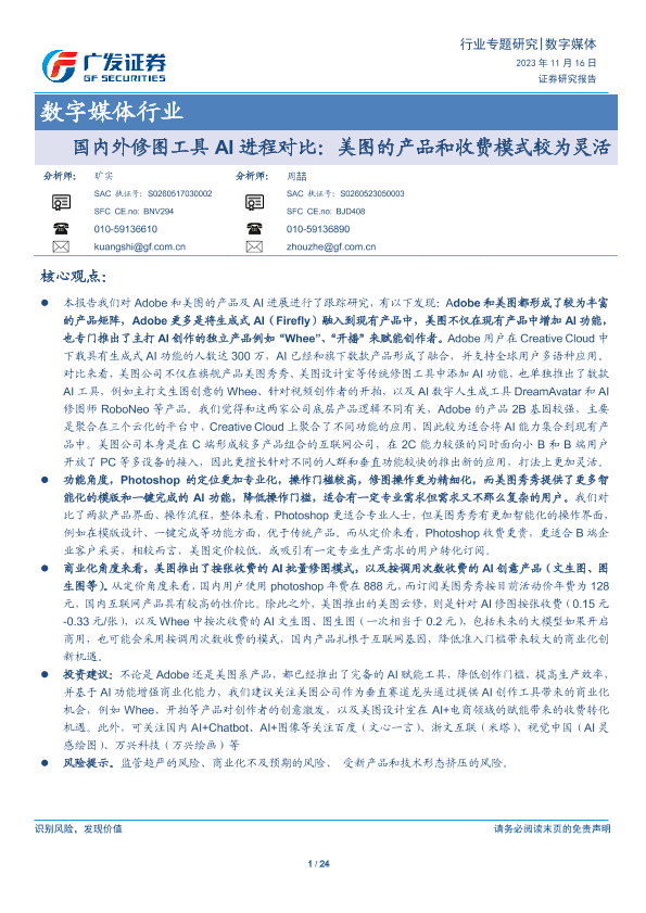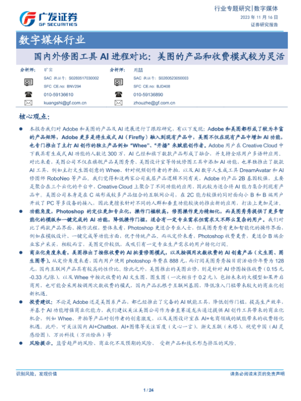 【广发证券】【20231116】20231116-广发证券-数字媒体行业专题研究:国内外修图工具AI进程对比:美图的产品和收费模式较为灵活-24页