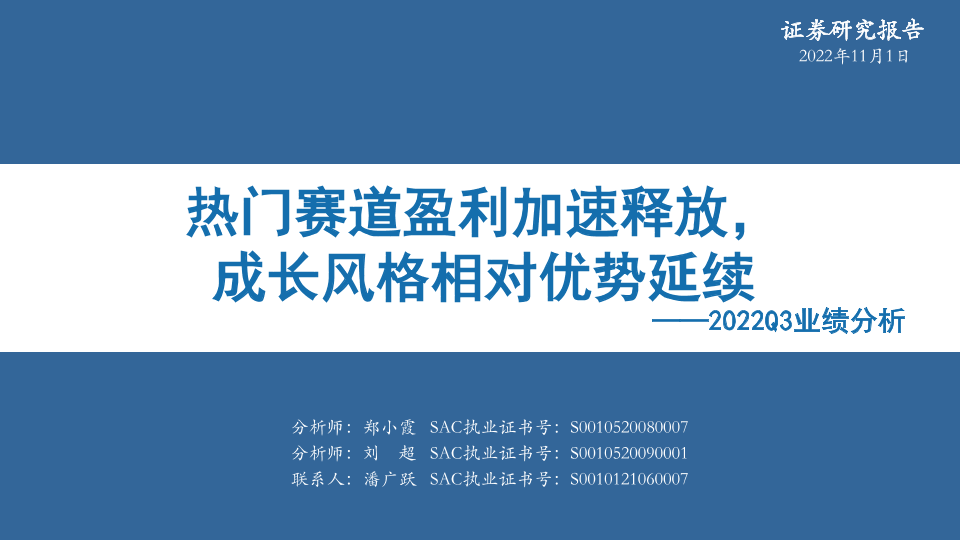 【华安证券】【20221101】2022Q3业绩分析:热门赛道盈利加速释放,成长风格相对优势延续-30页