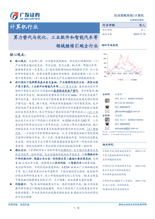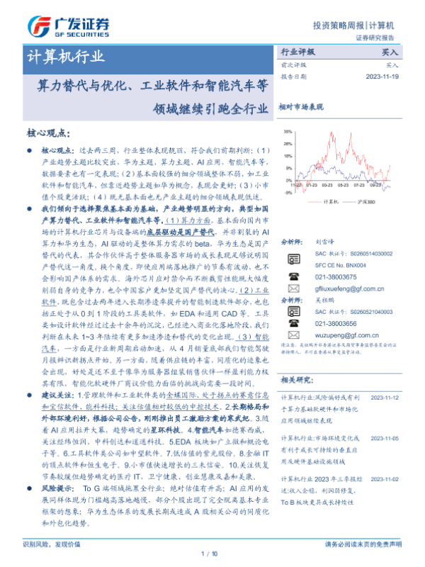 【广发证券】【20231119】20231119-广发证券-计算机行业投资策略周报:算力替代与优化、工业软件和智能汽车等领域继续引跑全行业-10页