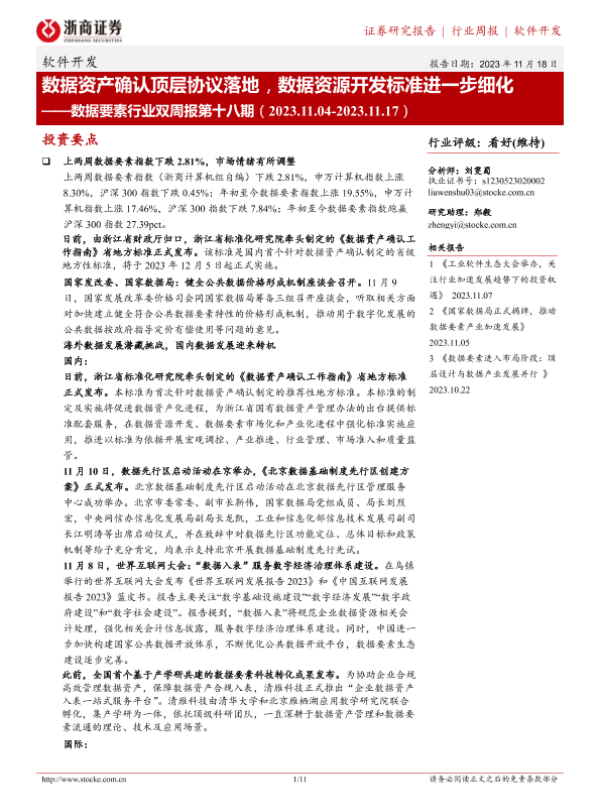 【浙商证券】【20231118】数据要素行业双周报第十八期:数据资产确认顶层协议落地,数据资源开发标准进一步细化-11页