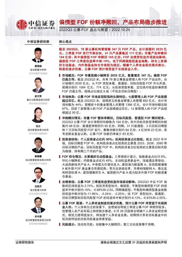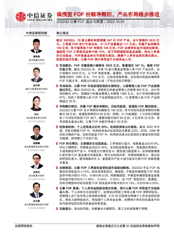 【中信证券】【20221029】2022Q3公募FOF盘点与展望:偏债型FOF份额净赎回,产品布局稳步推进-31页