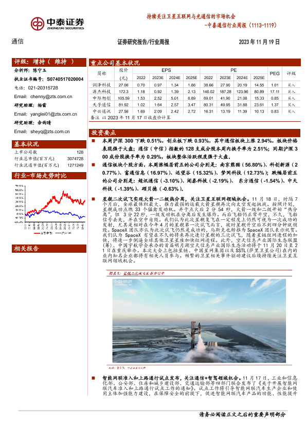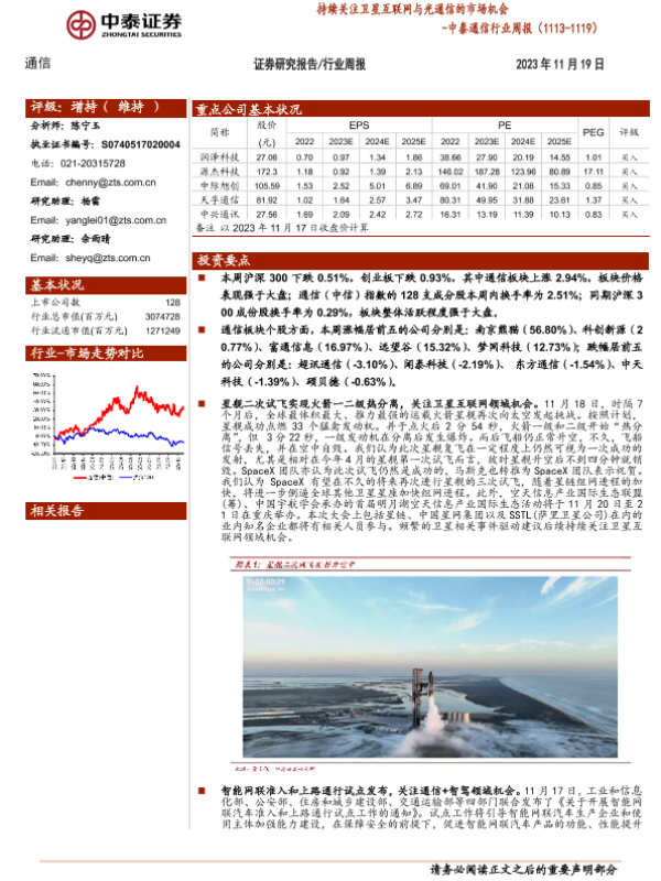 【中泰证券】【20231119】20231119-中泰证券-中泰通信行业周报:持续关注卫星互联网与光通信的市场机会-12页