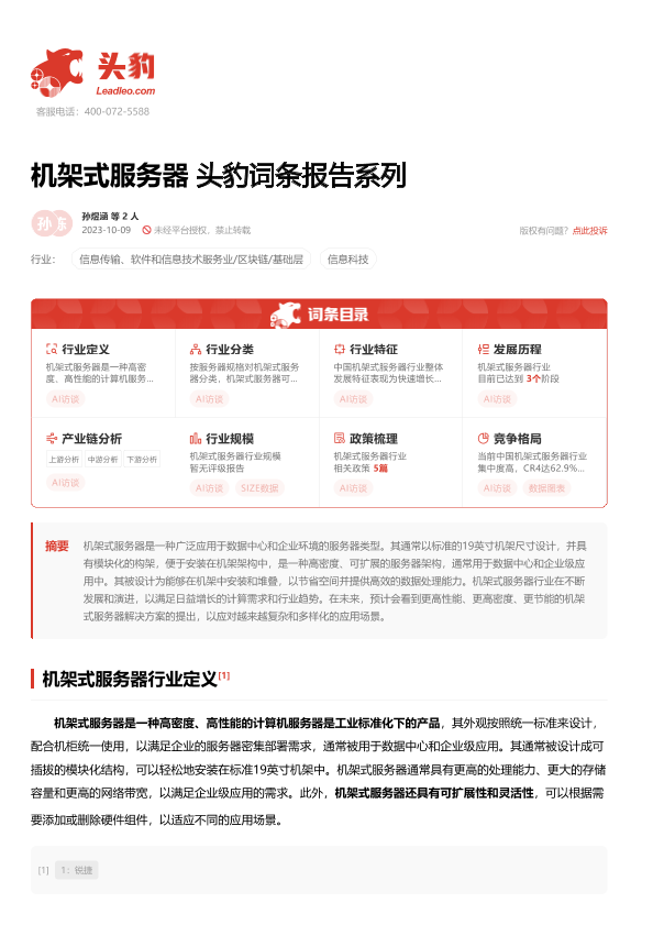 【头豹研究院】【20231009】机架式服务器 头豹词条报告系列-16页