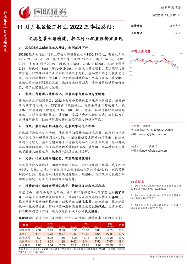 【国联证券】【20221101】11月月报&轻工行业2022三季报总结:文具包装业绩稳健,轻工行业配置性价比显现-21页