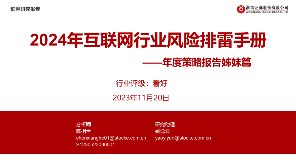 【浙商证券】【20231120】2024年互联网行业风险排雷手册:年度策略报告姊妹篇-18页