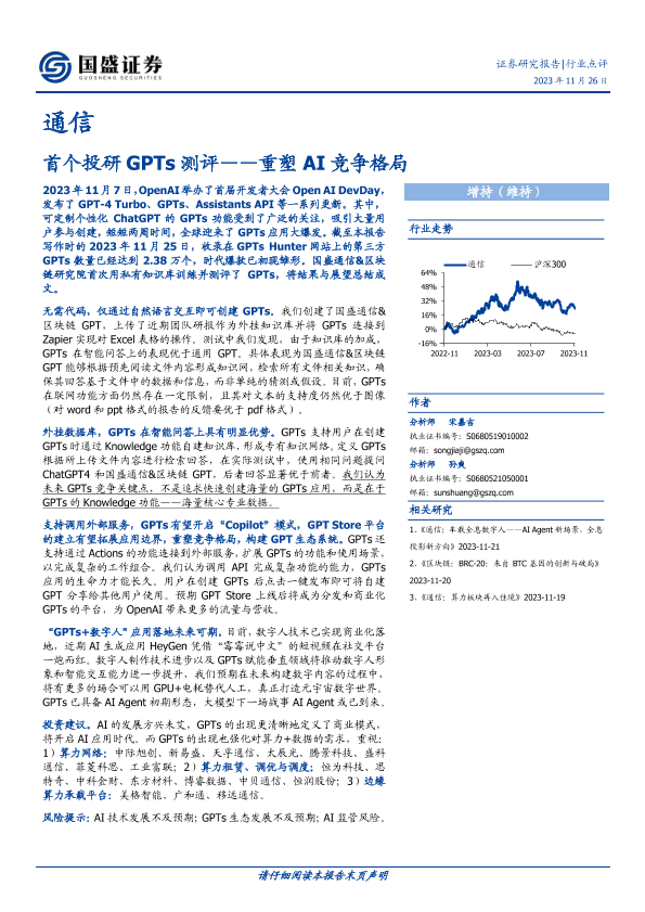 【国盛证券】【20231126】首个投研GPTs测评——重塑AI竞争格局-10页