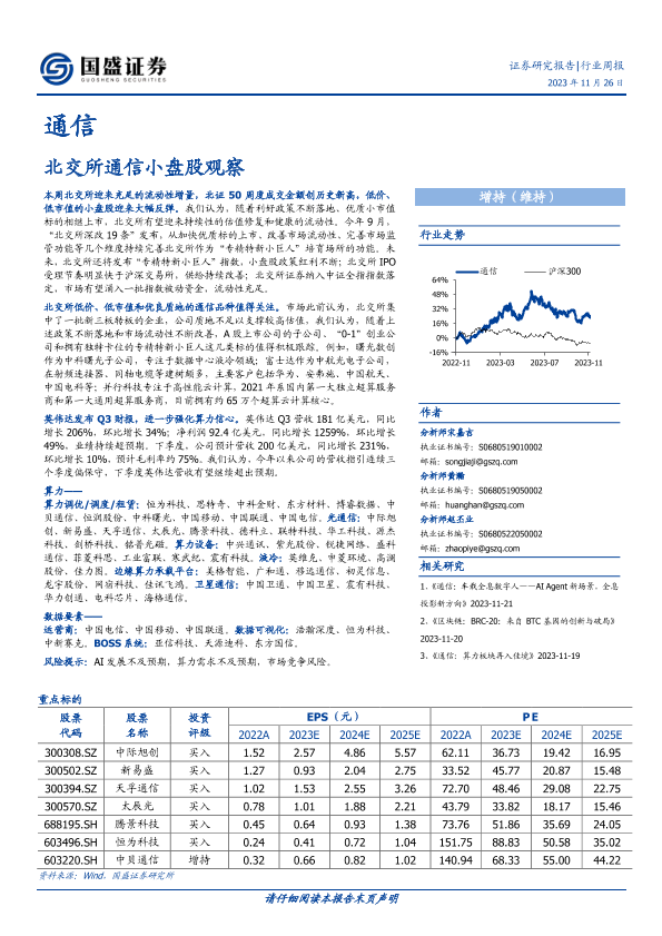 【国盛证券】【20231126】通信行业周报:北交所通信小盘股观察-16页