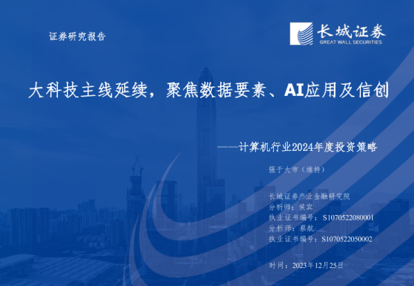 【长城证券】【20231225】20231225-长城证券-计算机行业2024年度投资策略:大科技主线延续,聚焦数据要素、AI应用及信创-67页