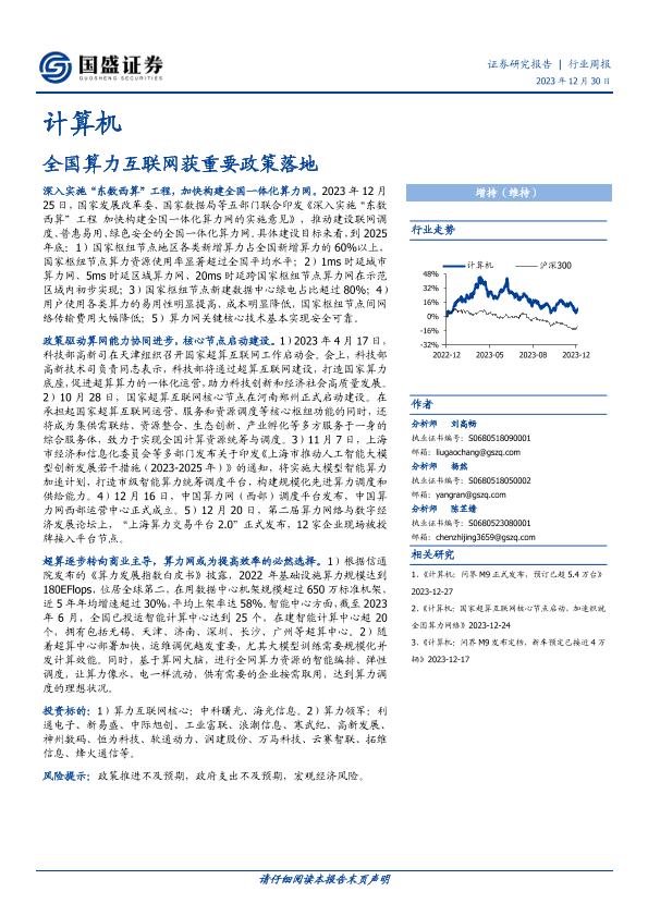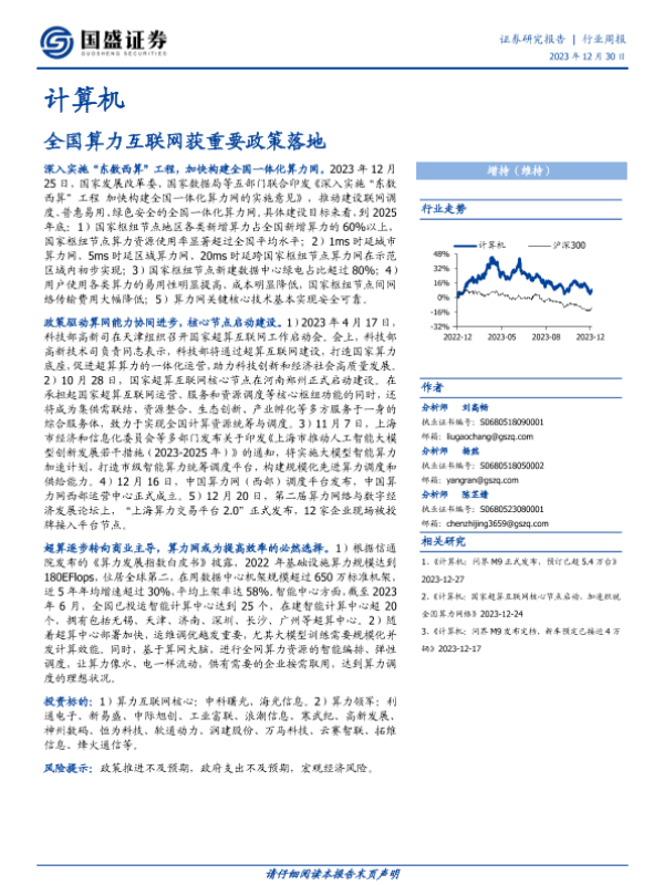 【国盛证券】【20231230】20231230-国盛证券-计算机行业周报:全国算力互联网获重要政策落地-13页