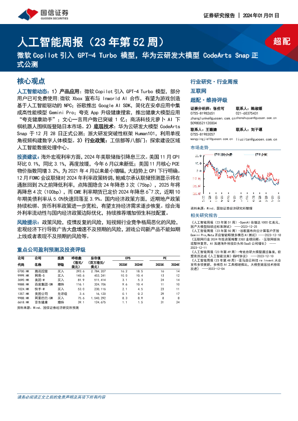【国信证券】【20240101】国信证券-人工智能周报(23年第52周):微软Copilot引入GPT-4 Turbo模型,华为云研发大模型CodeArts Snap正式公测-13页