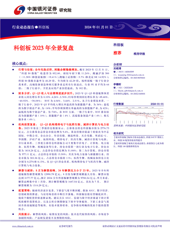2023年复盘 科创板 行情与估值 财务分析 配置策略