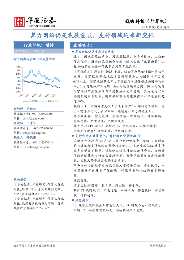 【华安证券】【20240101】20240101-华安证券-战略科技(计算机)行业周报:算力网络仍是发展重点,支付领域迎来新变化-14页
