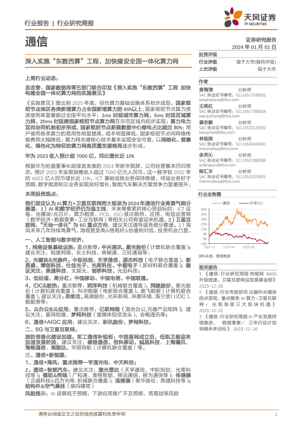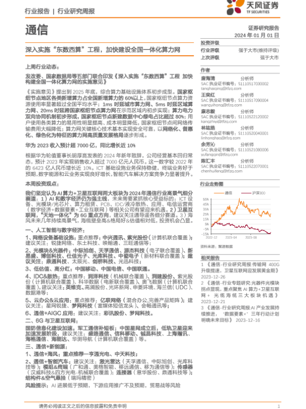 【天风证券】【20240101】通信行业研究周报:深入实施“东数西算”工程,加快建设全国一体化算力网-10页