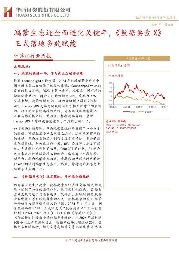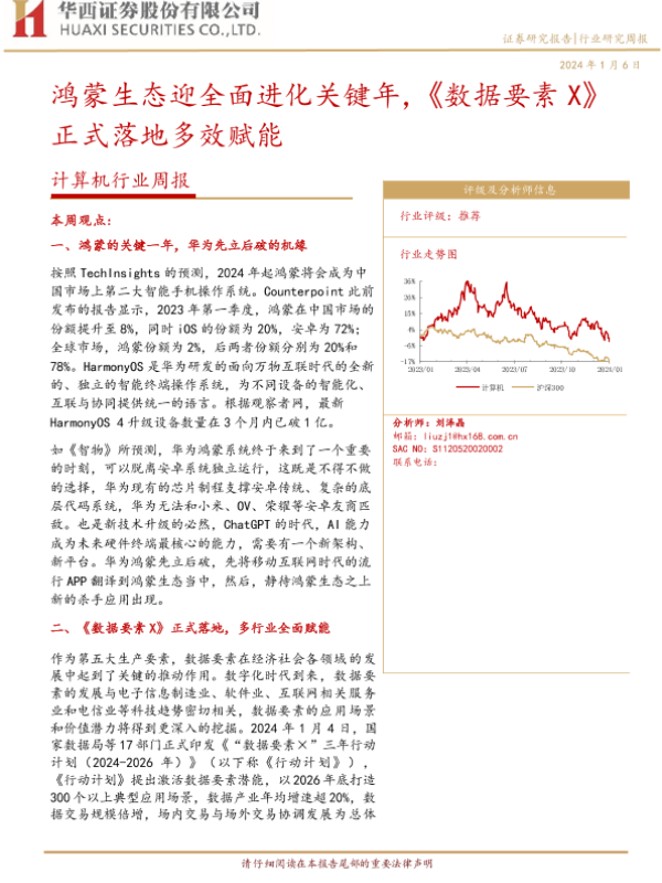 【华西证券】【20240106】计算机行业周报:鸿蒙生态迎全面进化关键年,《数据要素X》正式落地多效赋能-32页