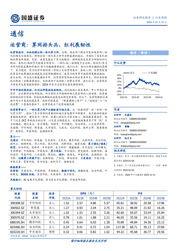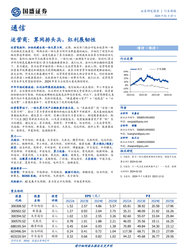 【国盛证券】【20240107】通信行业周报:运营商:算网排头兵,红利展韧性-12页