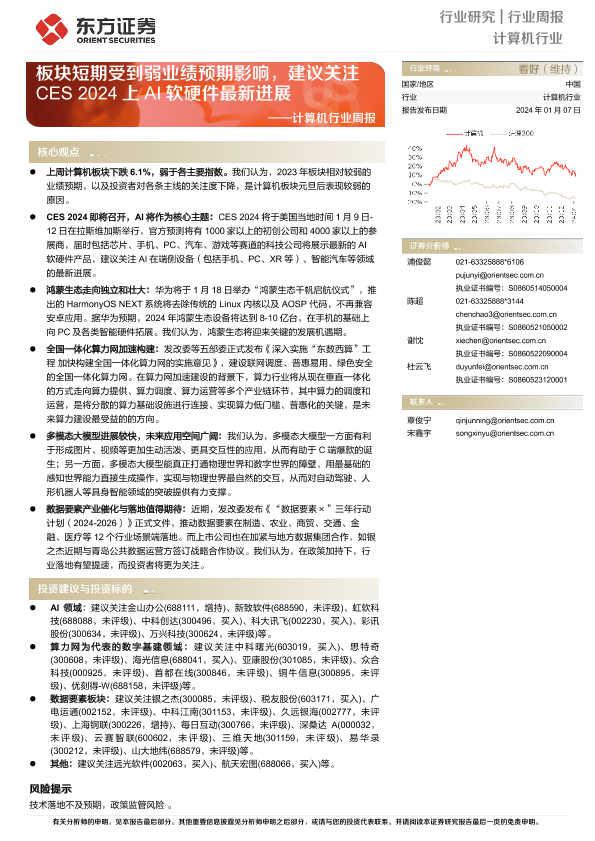 【东方证券】【20240107】20240107-东方证券-计算机行业周报:板块短期受到弱业绩预期影响,建议关注CES2024上AI软硬件最新进展-12页