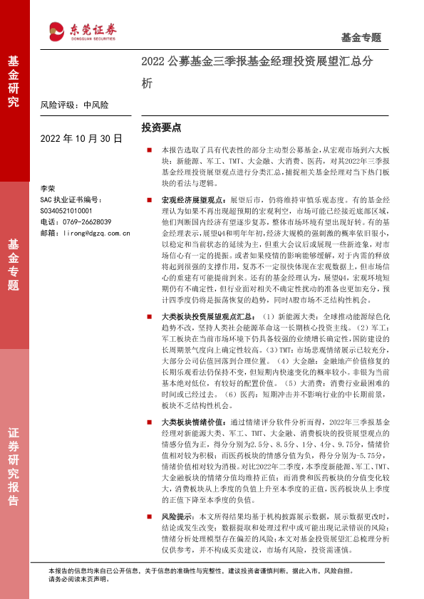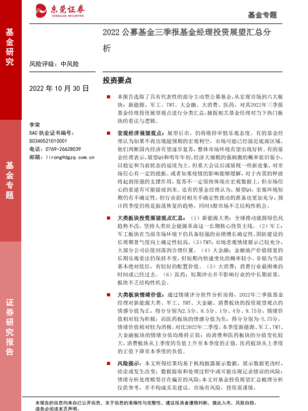 【东莞证券】【20221030】2022公募基金三季报基金经理投资展望汇总分析-17页