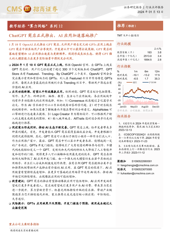【海通证券】【20240113】通信:数字经济“算力网络”系列12-ChatGPT商店正式推出,AI应用加速落地推广-13页