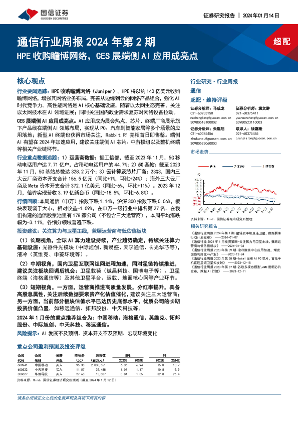 【国信证券】【20240114】2024年第2期通信行业周报:HPE收购瞻博网络,CES展端侧AI应用成亮点-26页
