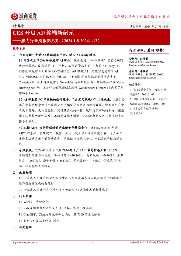 【浙商证券】【20240114】CES开启AI+终端新纪元-15页