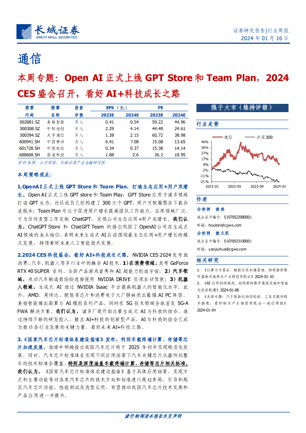 【长城证券】【20240116】通信本周专题:Open AI正式上线GPT Store和Team Plan,2024 CES盛会召开,看好AI+科技成长之路-22页