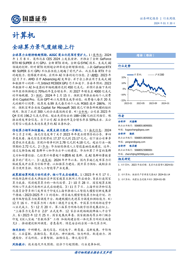 【国盛证券】【20240120】计算机行业周报:全球算力景气度继续上行-13页