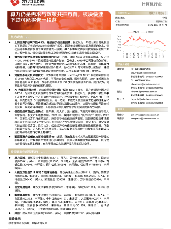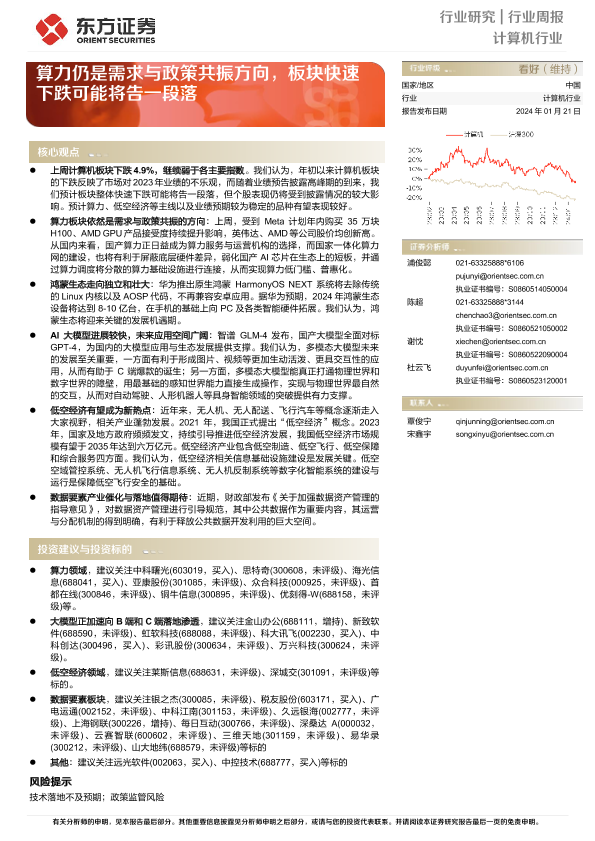 【东方证券】【20240121】20240121-东方证券-计算机行业周报:算力仍是需求与政策共振方向,板块快速下跌可能将告一段落-12页