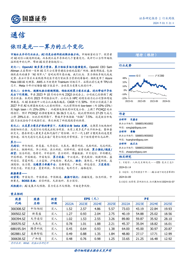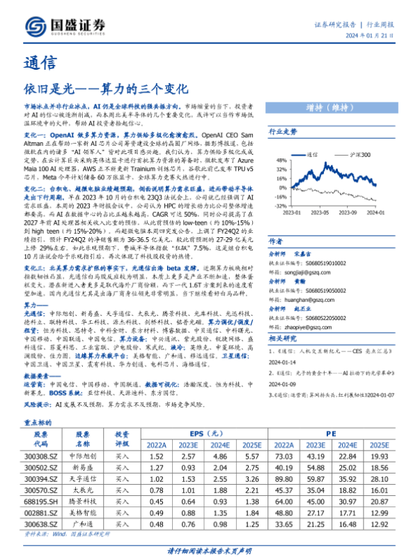 【国盛证券】【20240121】通信行业周报:算力的三个变化-依旧是光-18页