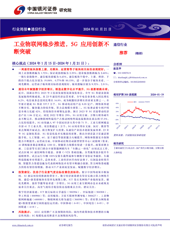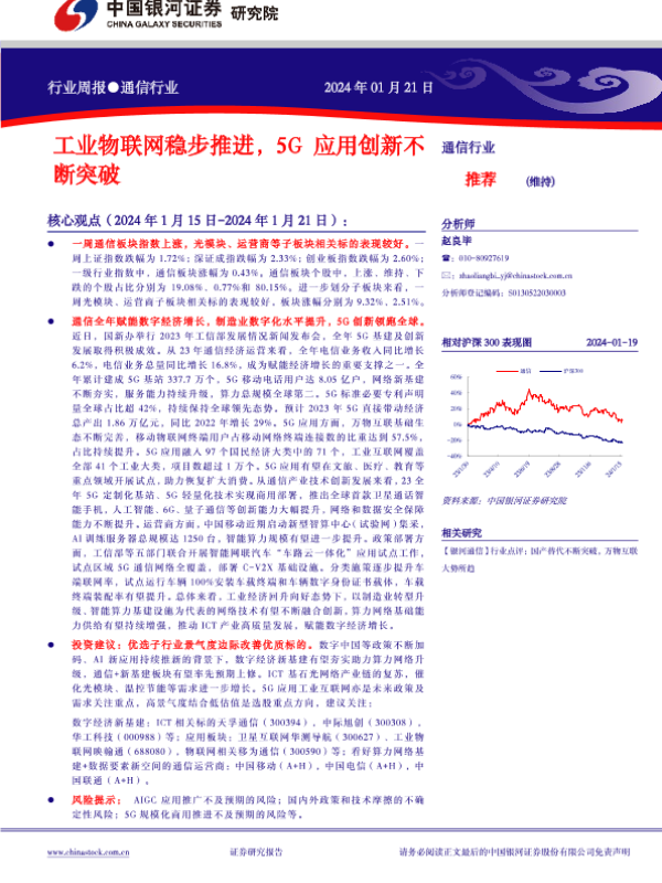 【银河证券】【20240121】通信行业行业周报:工业物联网稳步推进,5G应用创新不断突破-13页
