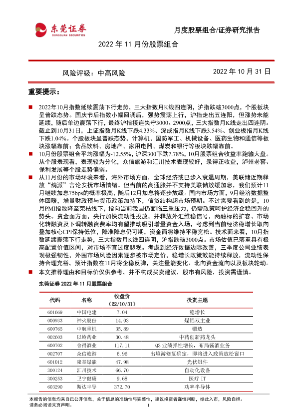 【东莞证券】【20221031】2022年11月份股票组合-15页