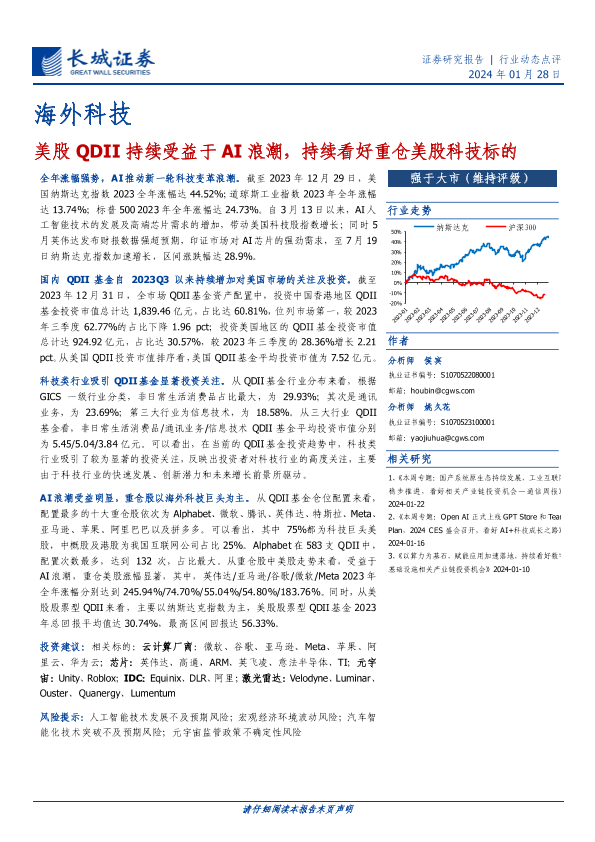 【长城证券】【20240128】美股QDII持续受益于AI浪潮,持续看好重仓美股科技标的-10页