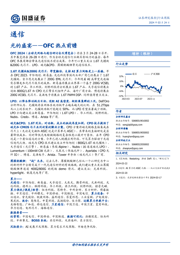 【国盛证券】【20240324】通信行业周报:OFC热点前瞻,光的盛宴-14页