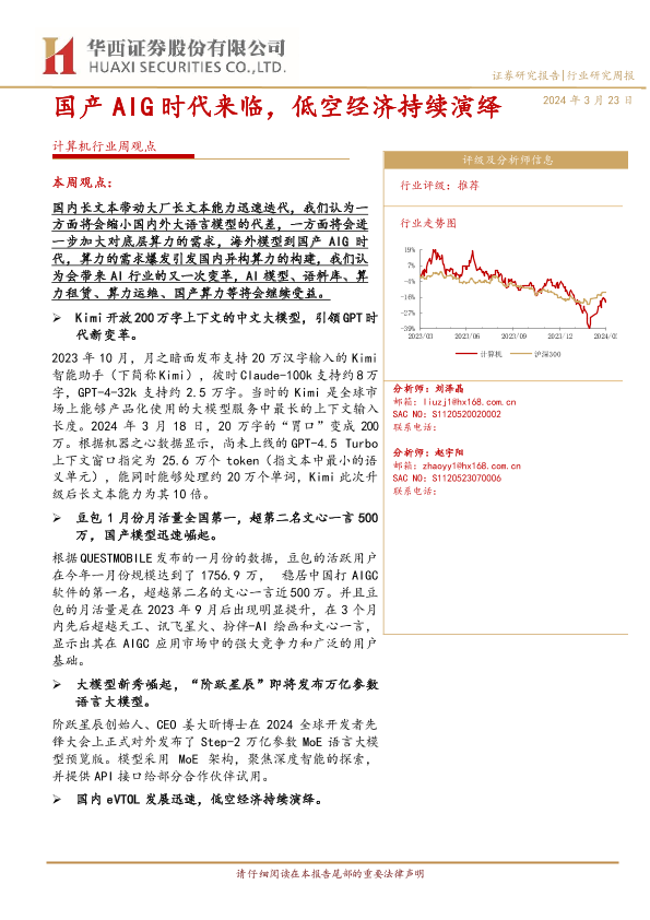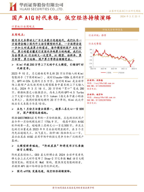 【华西证券】【20240323】20240323-华西证券-计算机行业周观点:国产AIG时代来临,低空经济持续演绎-39页
