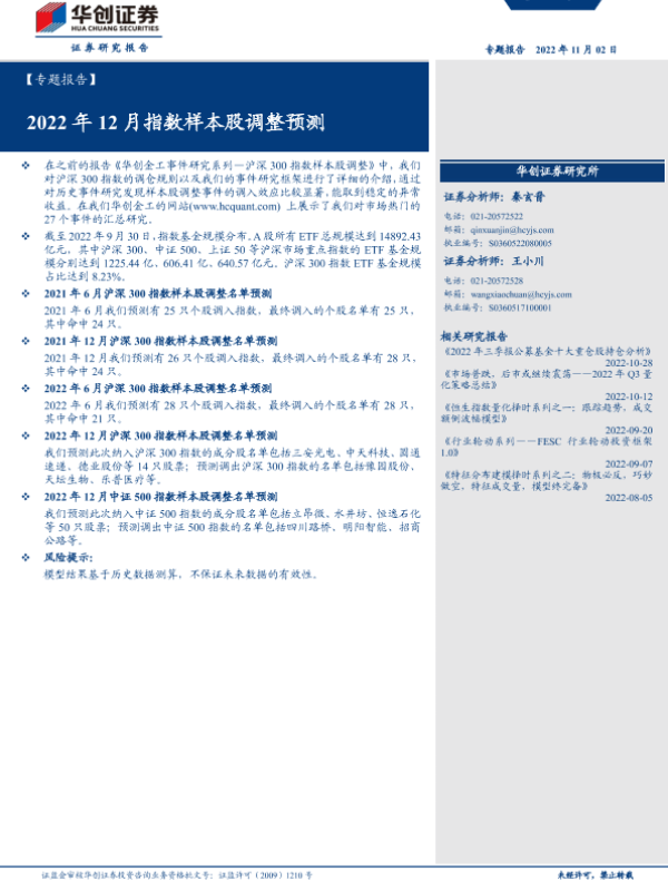 【华创证券】【20221102】2022年12月指数样本股调整预测-25页