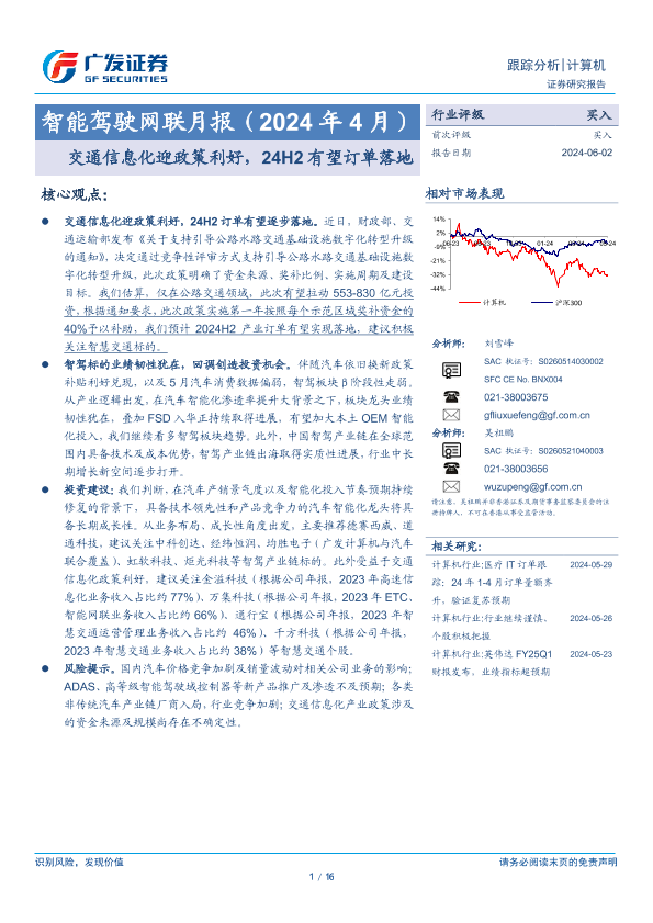 【广发证券】【20240602】智能驾驶网联月报(2024年4月):交通信息化迎政策利好,24H2有望订单落地-16页