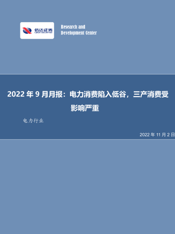 【信达证券】【20221102】2022年9月电力行业数据:电力消费陷入低谷,三产消费受影响严重-25页