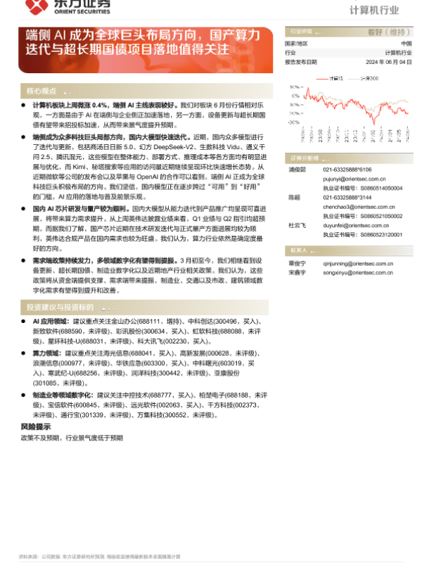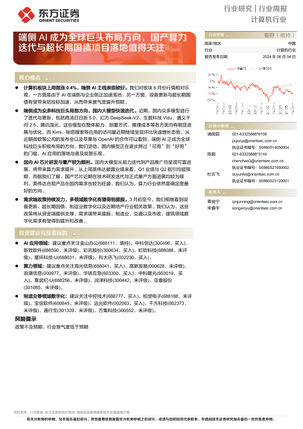 【东方证券】【20240604】20240604-东方证券-计算机行业周报:端侧AI成为全球巨头布局方向,国产算力迭代与超长期国债项目落地值得关注-10页
