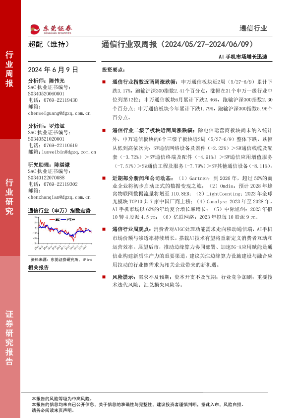 【东莞证券】【20240609】通信行业双周报:AI手机市场增长迅速-11页