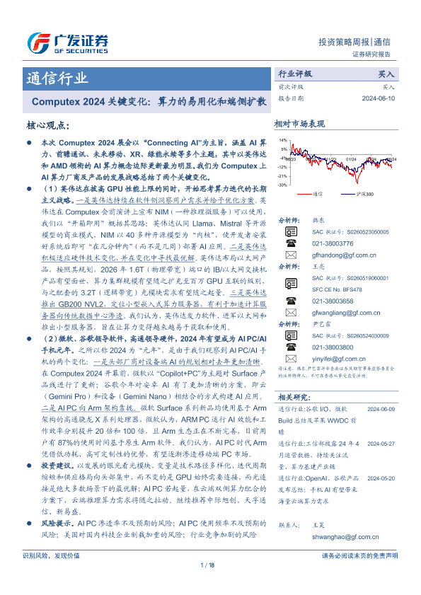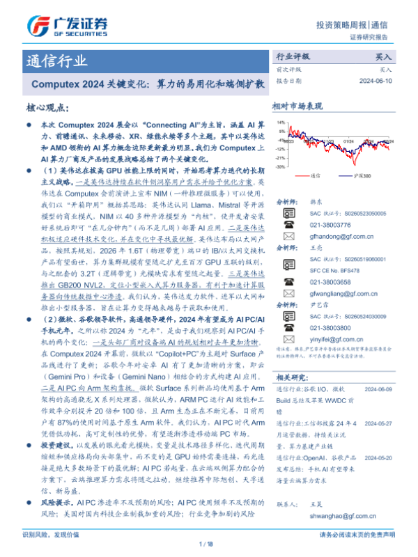 【广发证券】【20240610】20240610-广发证券-通信行业投资策略周报:Computex 2024关键变化:算力的易用化和端侧扩散-18页