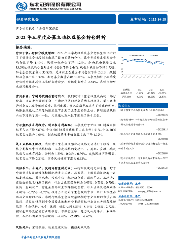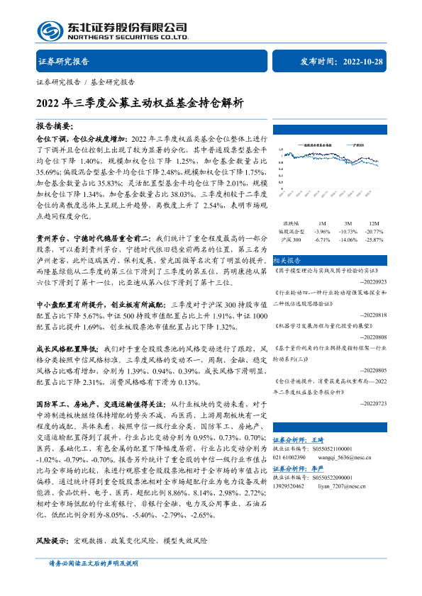 【东北证券】【20221028】2022年三季度公募主动权益基金持仓解析-28页