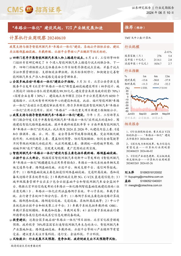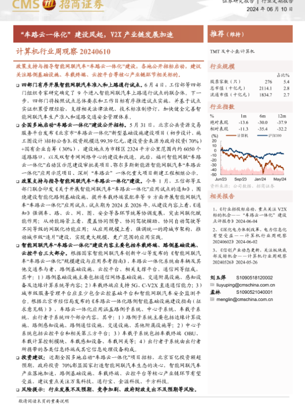 【海通证券】【20240610】计算机行业周观察:“车路云一体化”建设风起,V2X产业链发展加速-12页