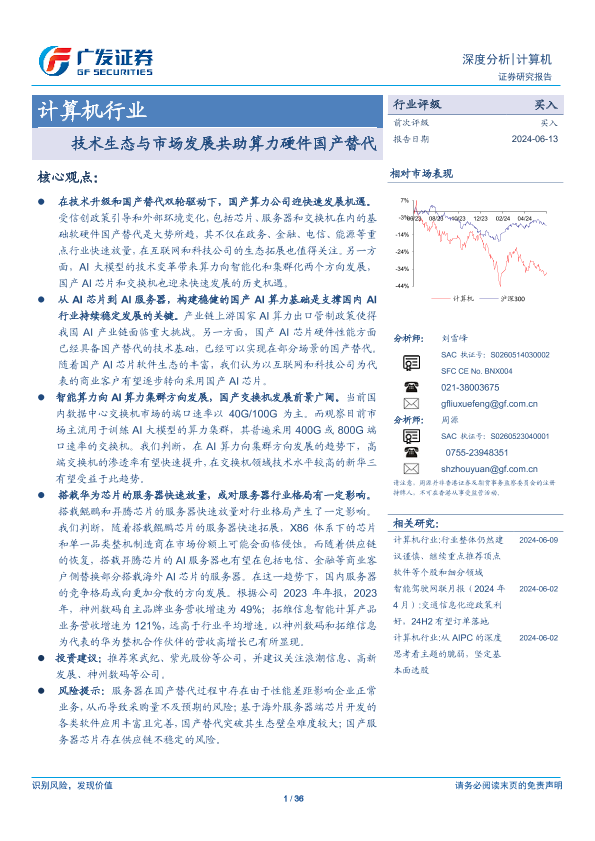 【广发证券】【20240613】计算机行业深度分析:技术生态与市场发展共助算力硬件国产替代-36页