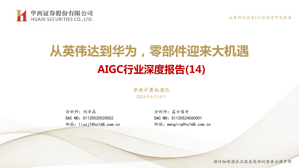 【华西证券】【20240614】20240614-华西证券-AIGC行业深度报告(14):从英伟达到华为,零部件迎来大机遇-38页