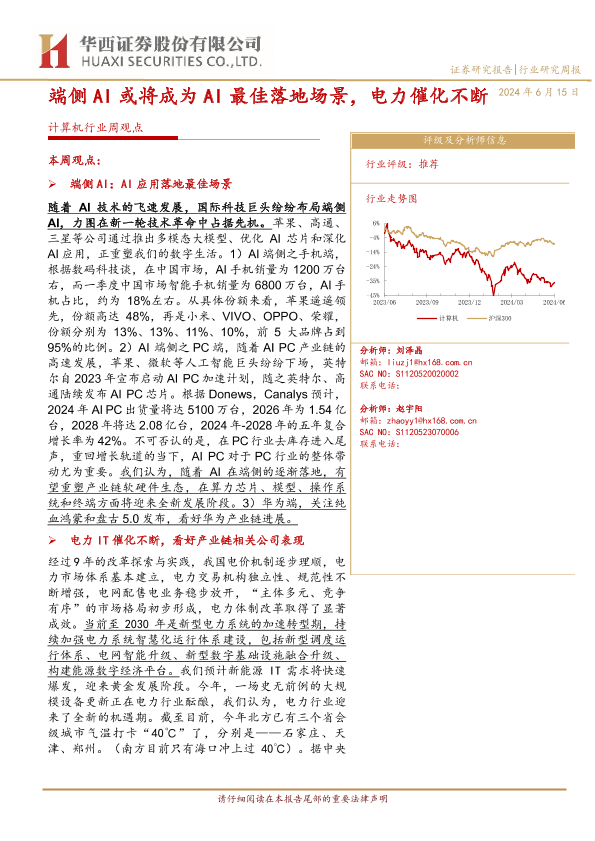 【华西证券】【20240615】20240615-华西证券-计算机行业周观点:端侧AI或将成为AI最佳落地场景,电力催化不断-35页