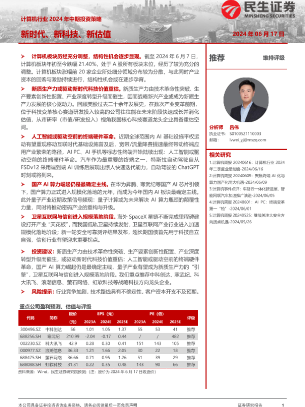 【民生证券】【20240617】计算机行业2024年中期投资策略:新时代、新科技、新估值-66页