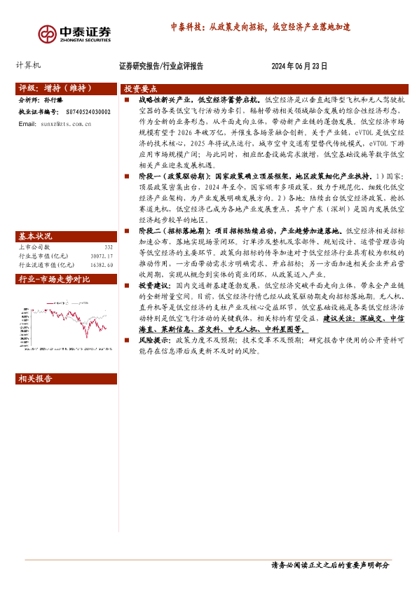 【中泰证券】【20240623】中泰科技:从政策走向招标,低空经济产业落地加速-15页