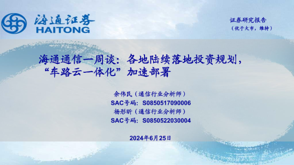 【海通证券】【20240625】20240625-海通证券-通信行业一周谈:各地陆续落地投资规划,“车路云一体化”加速部署-11页
